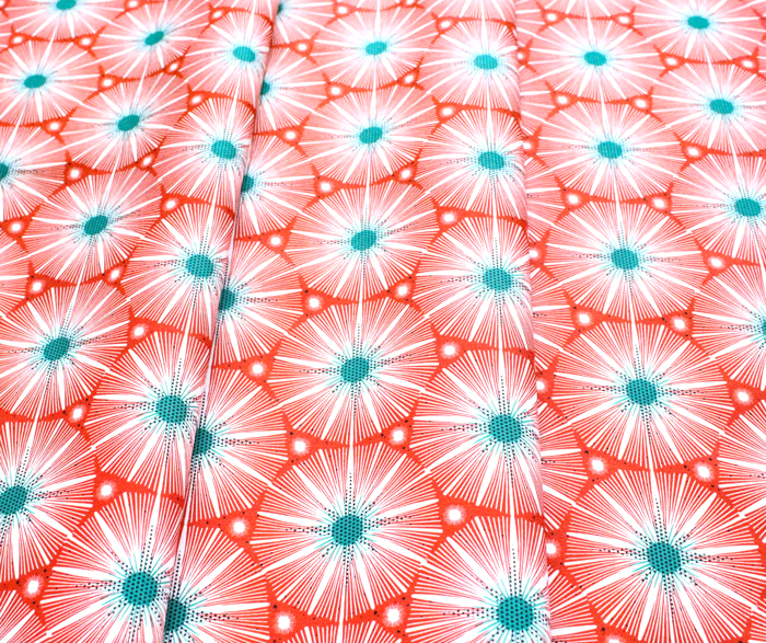 Heather Dutton 率いるデザインスタジオ Hang Tight Studio が超新星爆発(スーパーノヴァ)をイメージしてデザインした生地。中心部から放射状に広がるシャープなラインと、規則正しく並ぶ図形の美しさが目を惹くクールなデザインです。