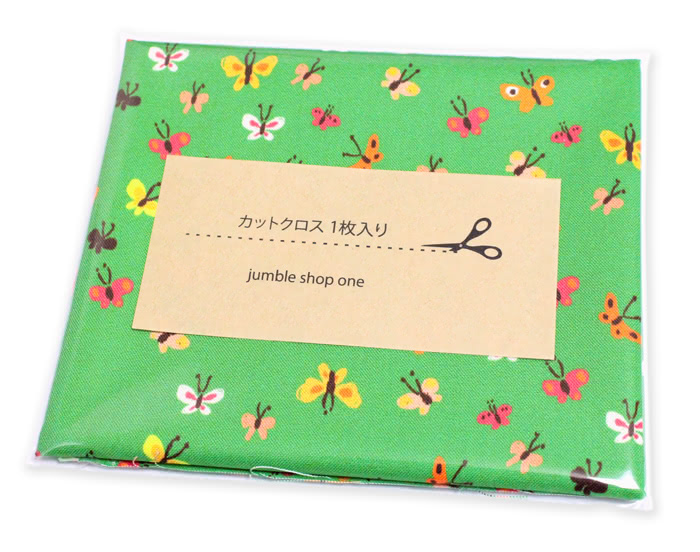 Heather Ross の過去の名作に新たなアレンジを織り交ぜて再リリースしたバタフライ柄の生地です。鮮やかなグリーンのベースに、カラフルで小さなバタフライが舞うデザイン。手書きの元絵をそのまま活かした朴訥なイラストが魅力です。