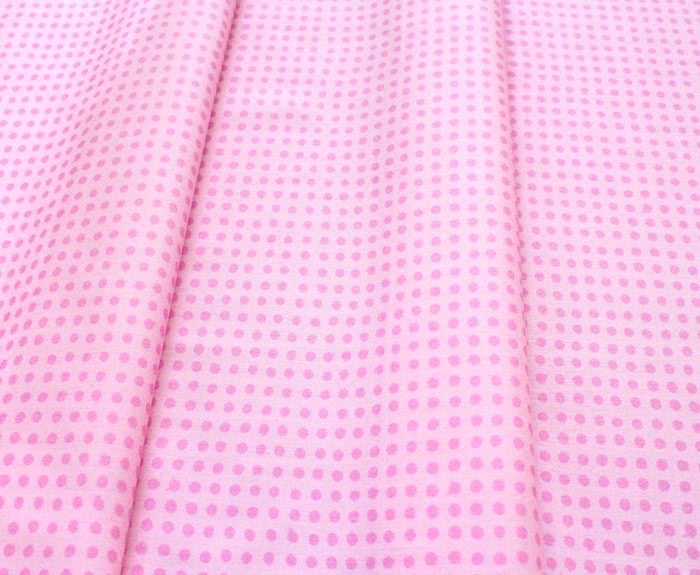 Heather Ross がコーディネートした「Ruby and Bee」のカラーを使用した汎用性の高いドット柄生地。ピンクのベースにダークピンクの歪なドット。絵の具で描かれた元デザインの飛沫やハネもそのままに再現されたプリントです。