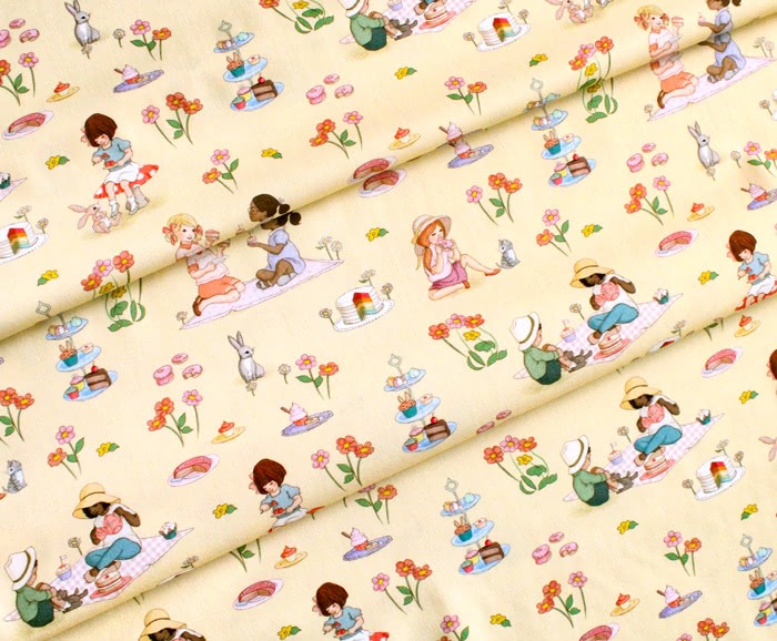 「Yummy Scrummy Day Collection」は、イギリスのライフスタイルカンパニー Belle & Boo がデザインを担当したお菓子作りがテーマの生地コレクションです。