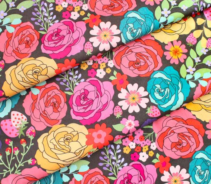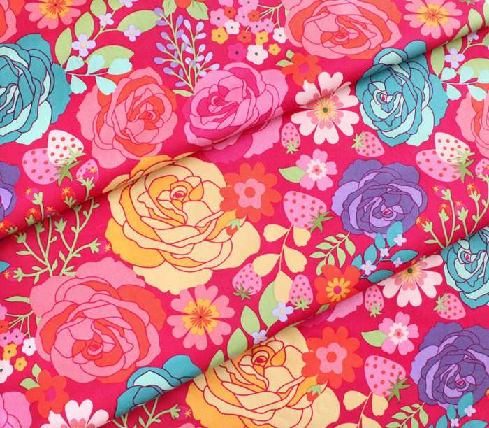 「Calico Cowgirls Collection」は、テキスタイルデザイナー Lori Woods が手がけた花柄生地コレクションです。カラフルで鮮やかな色使いとユニークな花柄や可愛い苺デザインが魅力。ソーイングのアイデアを刺激してくれるポップな生地をお楽しみください。