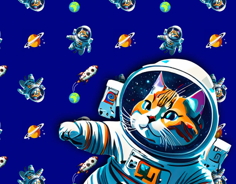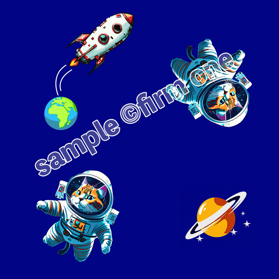 ネコ好きさん・宇宙好きさん両方の好みを一度にかなえるデザイン「Cat Astronaut」好評販売中!デジタルプリントのリアルファブリックさんでオーダー可能です。