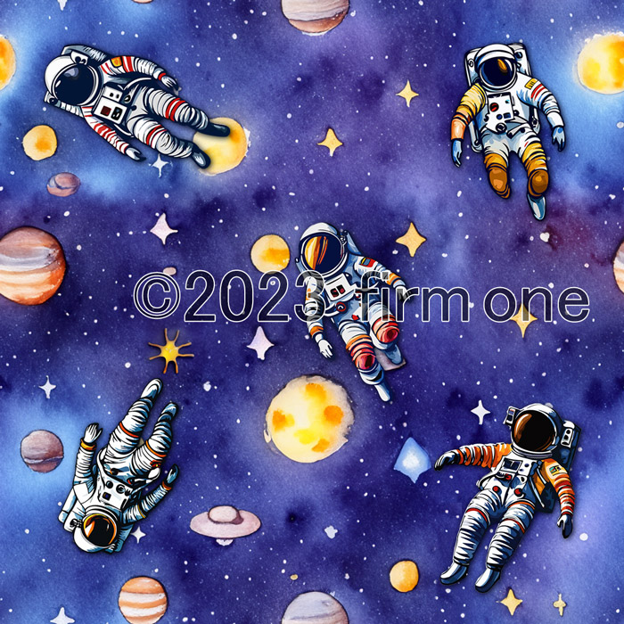 弊事務所の diamonrou がデザインした宇宙柄・宇宙飛行士柄の生地がリアルファブリックさんで販売中。