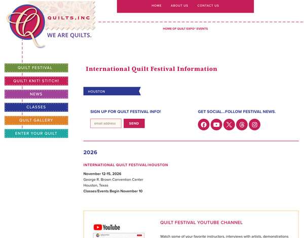 1975年にヒューストンで始まったこのショーは、今や世界最大のキルトイベントに成長しました。4日間で25カ国以上から42,000人以上が訪れます。コンペティションに出品された作品の中には、美術館で飾られてもおかしくないほどのクオリティのものも多く、アート・キルトの今がここに集まっています。2026年は日程が11月に変更され、会場入りのクラスは11月10日からスタートします。